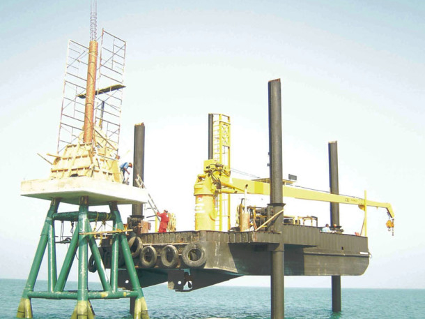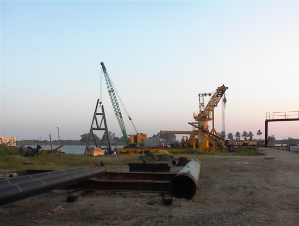 Construcción de la estructura metálica (Balizas) y colocación de esta en las escolleras de Tuxpan, Veracruz.