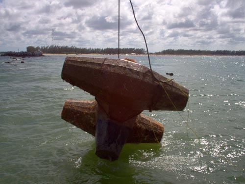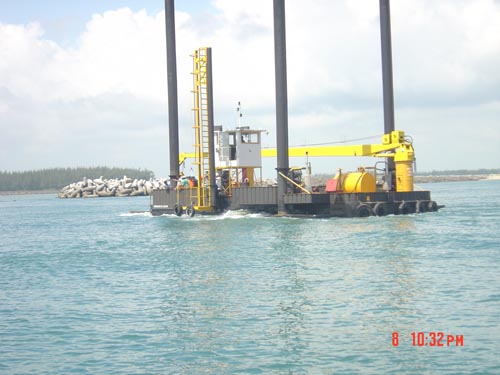 Ampliación de la escollera submarina Norte en su tercera etapa, se colocaron 16,000 toneladas de roca basaltica y 200 core-locs de 20.52 toneladas cada una habiendo aumentado 60 metros.