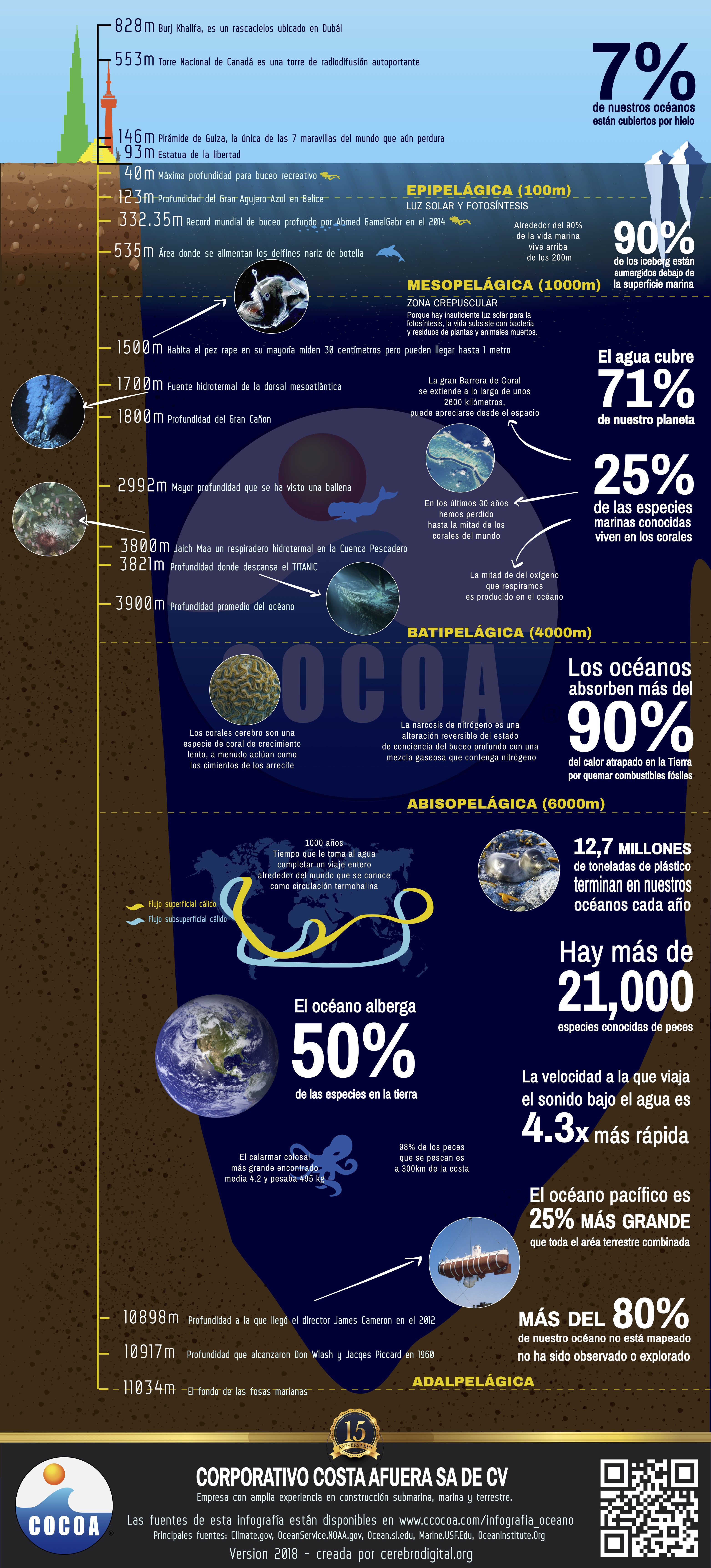 - 1000m máxima profundidad que alcanza la luz solar (https://oceanservice.noaa.gov/facts/light_travel.html)