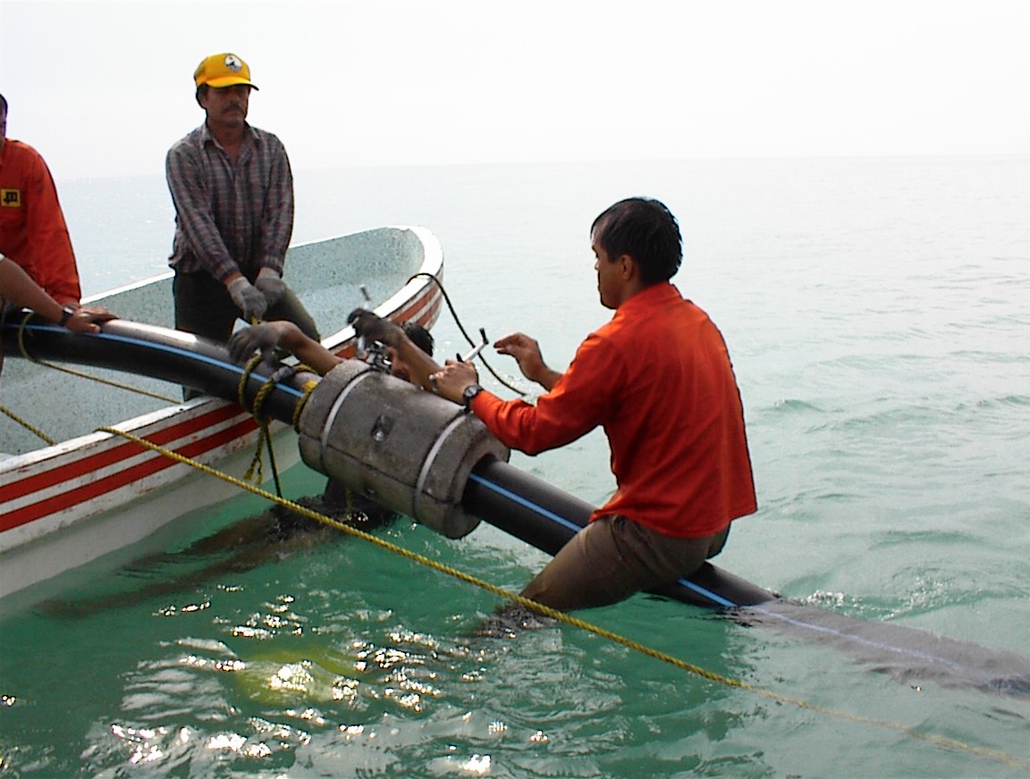 Suministro, tendido e instalación de 500 mts tubería de descarga de HDPE de 6″Ø con encamisado de tubería de acero de 12″ø