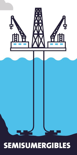 Estas flotan por la flotabilidad de las columnas y pontones situaos bajo el agua y el peso suficiente para mantener la estructura en vertical.