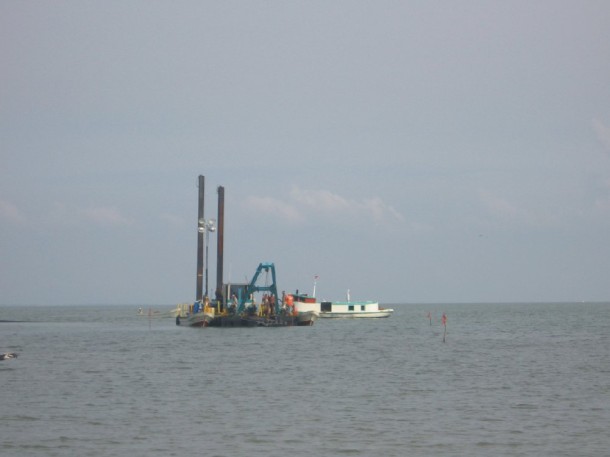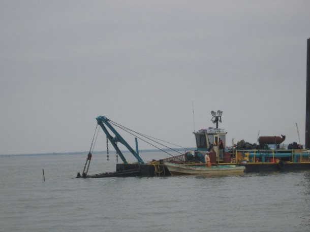 Trabajos de dragado en la Laguna de Tamiahua, Veracruz